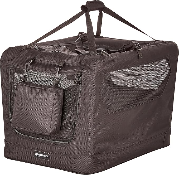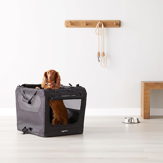Amazon Basics Folding Portable Soft Pet Dog Crate Carrier Kennel, 26.2"L x 17.8"W x 18.1"H, Black