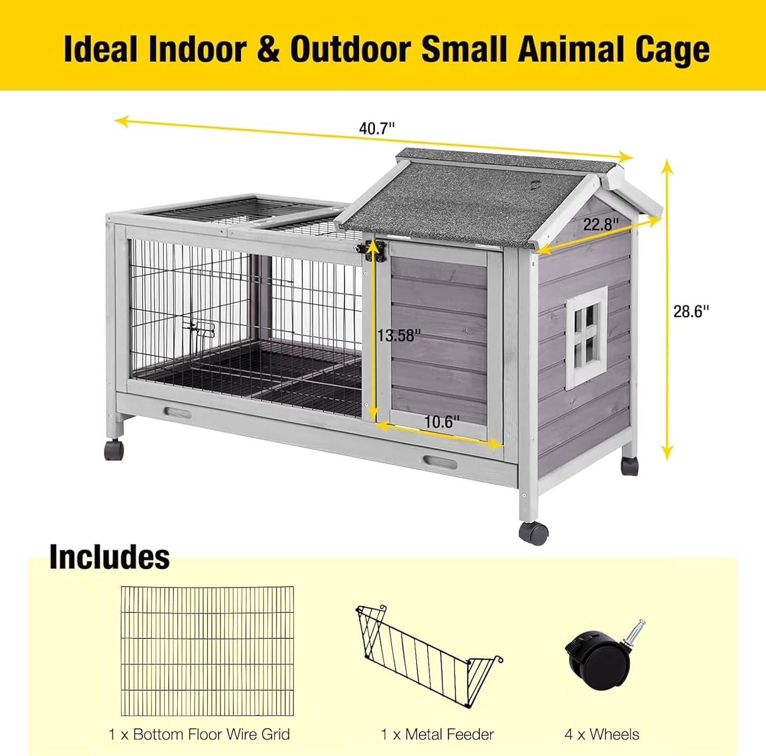 - Movable Wooden Hutch: Four Casters to move the bunny hutch easily and quickly. Two of them are brakes to stay well and safe