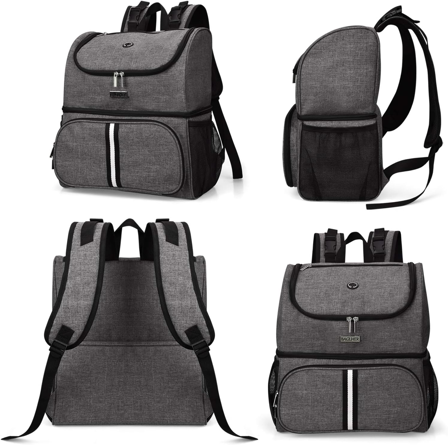 BAGLHER Pet Travel Bag, Double-Layer Pet Supplies Backpack (for All Pet Travel Supplies), Pet Travel Backpack with 2 Silicone Collapsible Bowls and 2 Food Baskets Grey