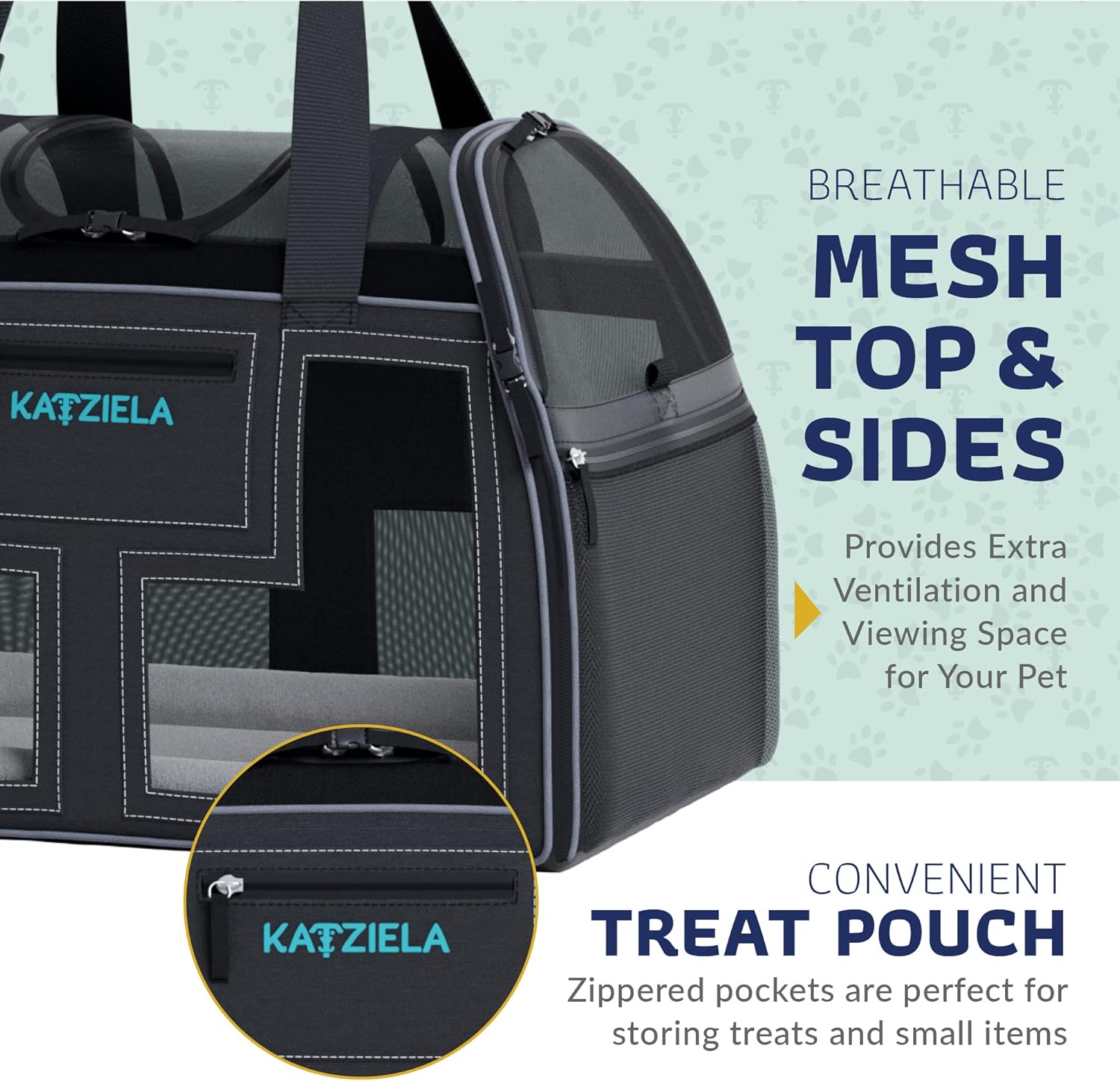 Katziela Rolling Pet Carrier Airline Approved - Pet Carrier with Wheels - Luxury Lorry - Deluxe TSA Approved Cat Carrier with 6 Wheels - Small Airline Approved Dog Carrier Trolley - Plane Carry On Bag
