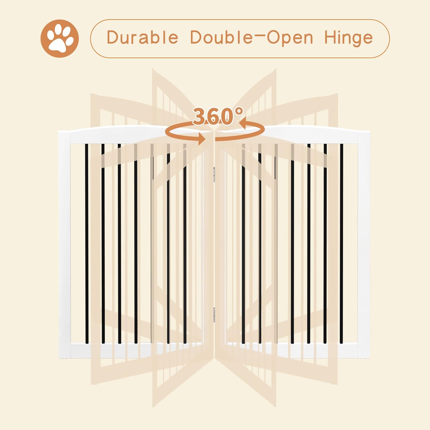 Freestanding Pet Gate - Foldable Wooden Dog Gate, 80 Inch Wide, 4 Panels, White
