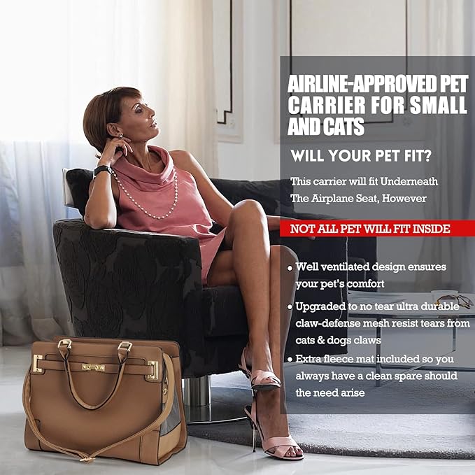- ✈[ Airline-Approved ] The portable pet carrier purse suit for all airlines,you can makes it easy to take your small cat or dog on airplanes.Perfect for travel.Conforms to under-seat dimensions of most airlines. The Best Gift For Yorkie/Chihuahua/Teacup/Puppy/kitten Lovers.This bag every dog needs.