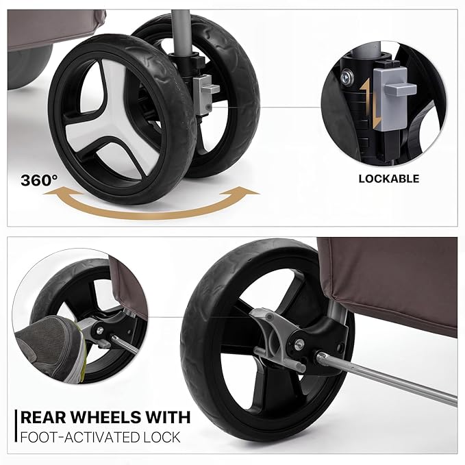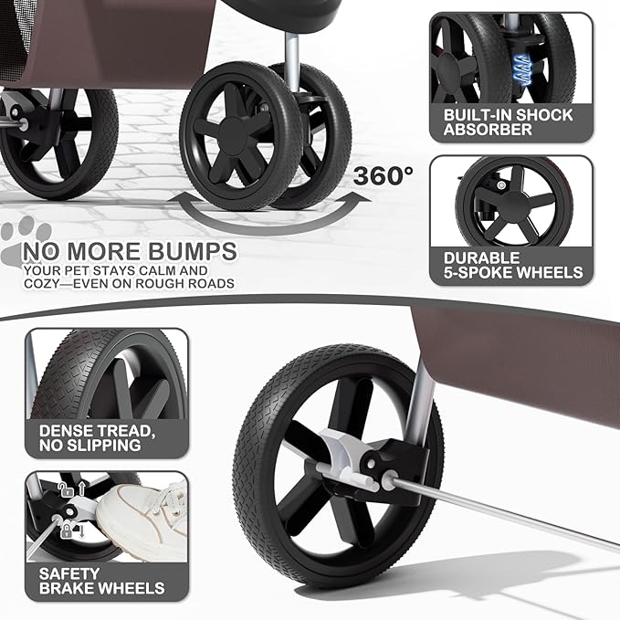 MoNiBloom Foldable Dog Strollers for Small Dogs with Weather Cover, 3 Wheels Pet Strolling Cart for Dogs and Cats with Storage Basket and Cup Holder, Breathable and Visible Mesh for All-Season, Coffee