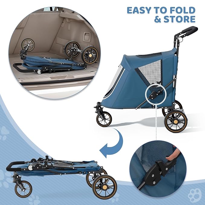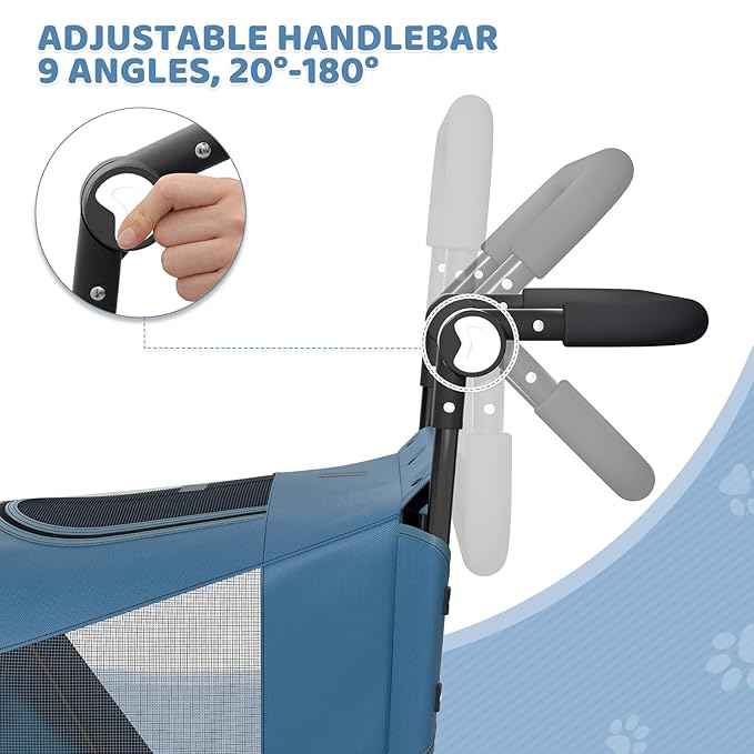 Magshion Pet Stroller for Medium Dogs w/Adjustable Handle, 3-Wheel Dog Cat Wagon w/Dual Entry, Rear Storage, Breathable Mesh, One-Foot Brake, Ideal for Large Pets up to 55 lbs, Navy Blue
