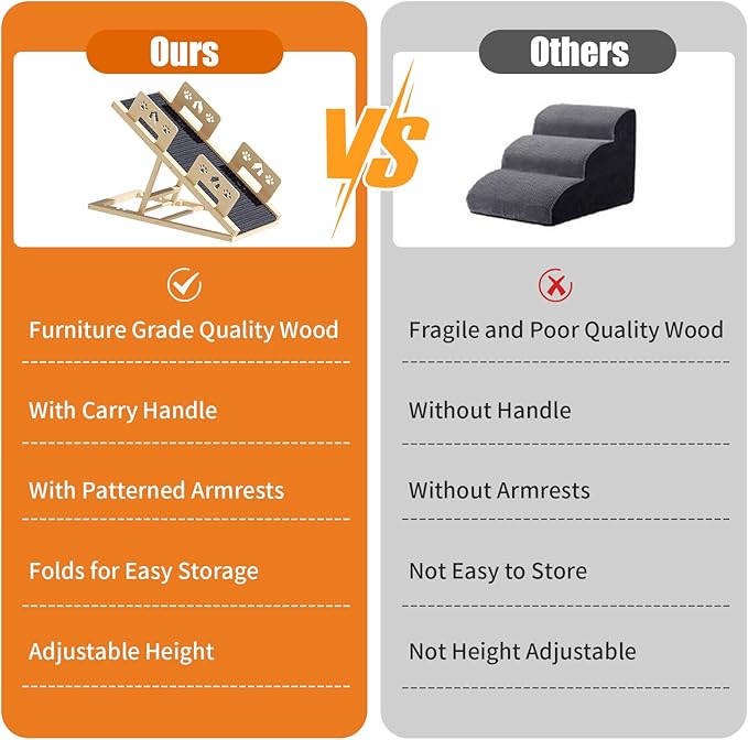 - 🐕【Safe and Stable Structure】This car ramp for dog is made of high-quality wood, smooth and flat surface, solid and stable bottom, you can rest assured that your pet can climb, well-made pet ramp for your pet to provide a safety guarantee