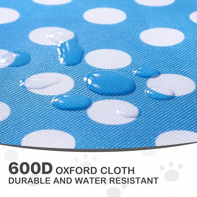 MoNiBloom 4 Wheels Pet Stroller, Easy-Fold Umbrella Shaped Dog Cat Jogger Stroller w/Storage Bag & Visible Mesh for Small/Medium Dogs Cats Sky Blue Polka Dots
