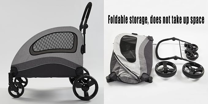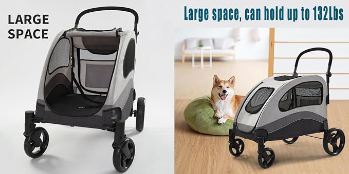 ANLULOAD Dog Stroller for Large Dogs,Dog Carriage,Foldable, Adjustable Handle, with Pocket with One-Foot Brake Up to 132lbs