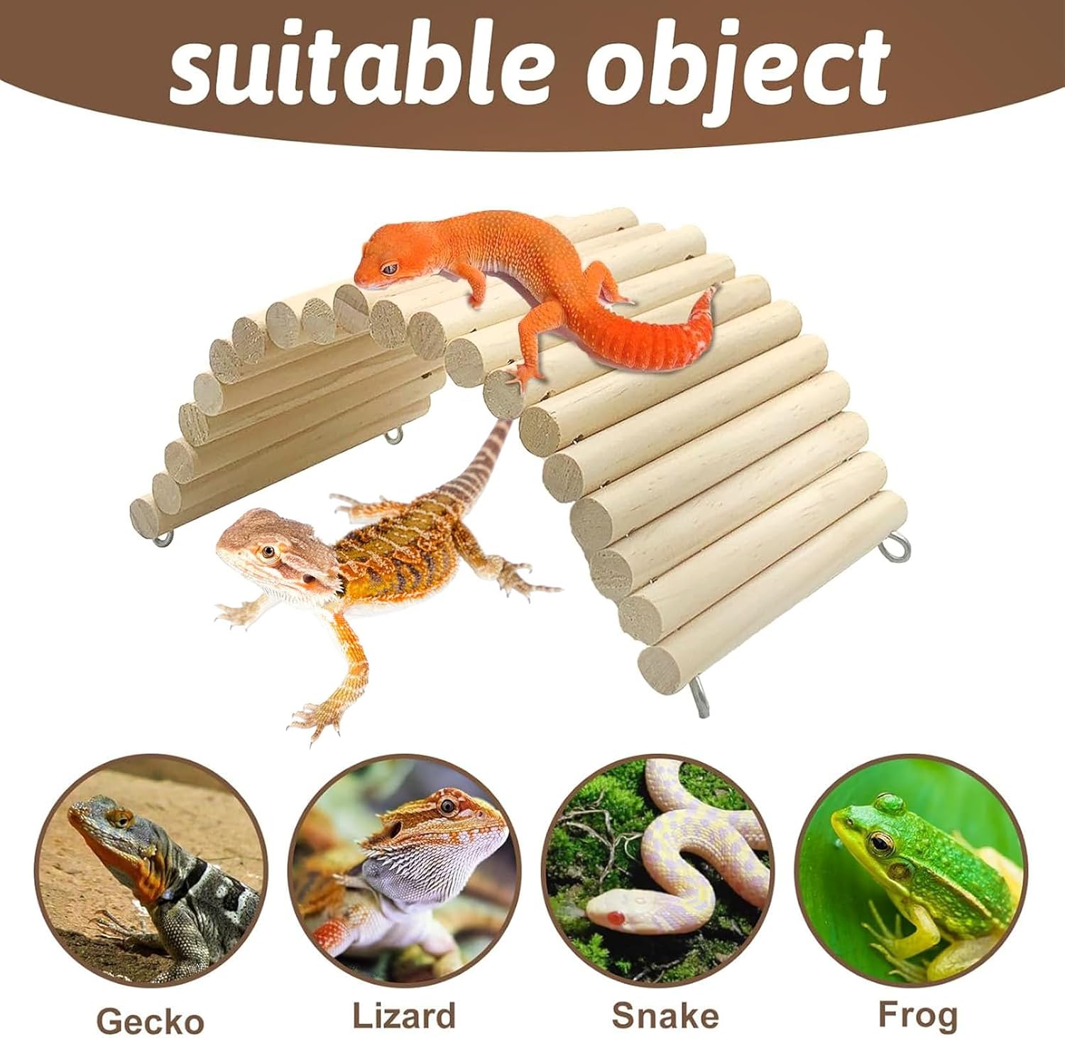 - Entertain & Exercise: The wooden tunnel satisfies burrowing animals' instinctive need to dig, find privacy and cover over their heads. Reduces reptile anxiety and makes it comfortable. Promote exercise and help to develop coordination and balance skills, creating an reptile climbing ladder bridge for your pet