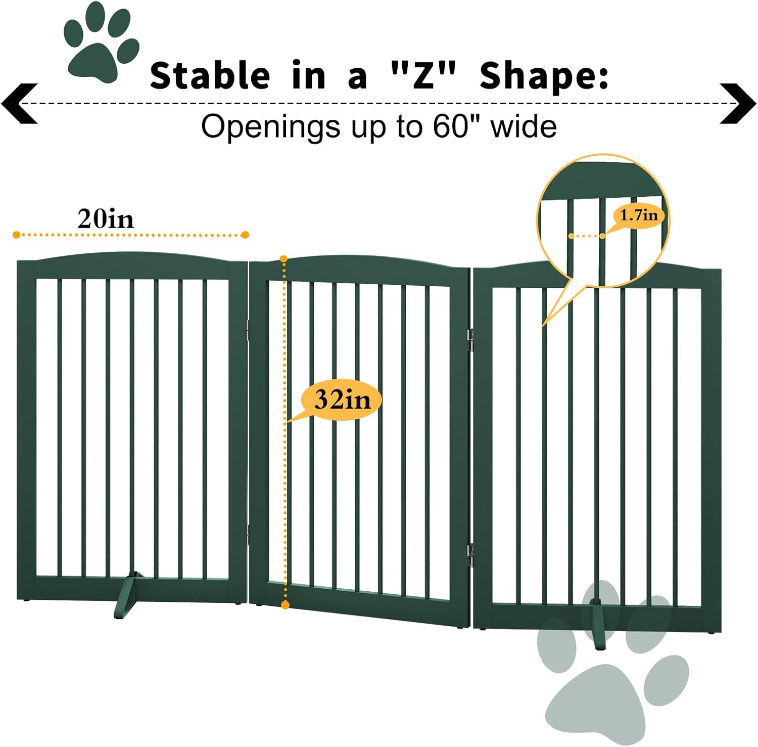 - 【FLEXIBLE FOLDING & STABILITY】: With flexible 360° hinges, this indoor pet gate can be fold in different shapes and barricade your pets in doorways, entryways, halls, bedrooms, stairs, kitchens, balconies. It is sturdy enough with exclusive metal support feet.
