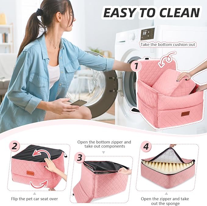 - Multi-functional Use: The small dog car seat is not only suitable for vehicles, but can also be used as a dog bed at home, outdoors or in a tent, providing your dog with a comfortable resting space anwhere. It has a removable and washable cover, simply open the zipper and take out the sponge to clean the cover. Please note that the inner sponge is not washable