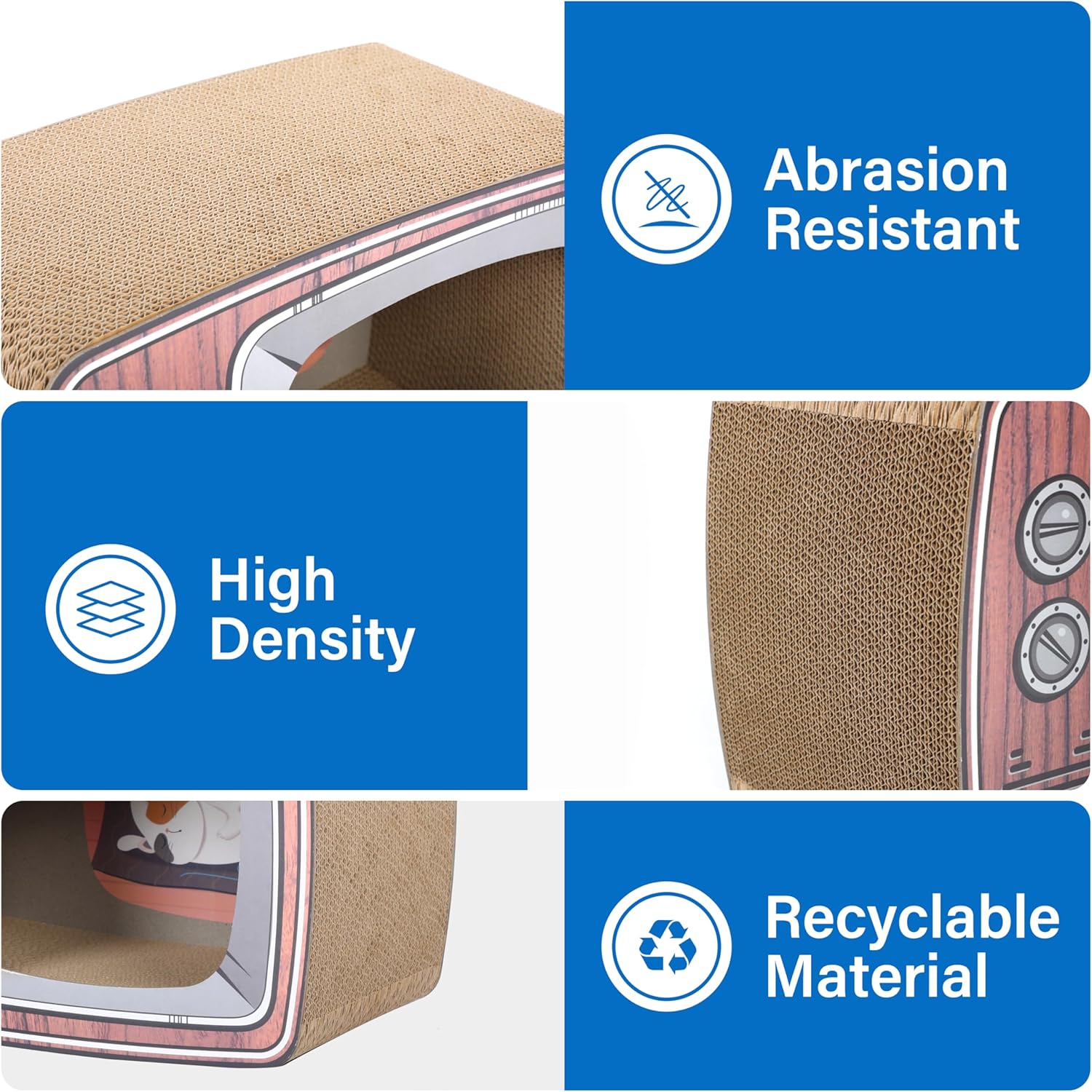 - Eco-Friendly & Safe: Constructed from 100% recycled corrugated cardboard, non-toxic, and glue-free materials, ensuring a safe and eco-conscious choice for your cat's entertainment. Dimensions: 17.3L13.4W9.1H inches.