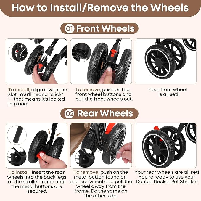 Double Pet Stroller for Dogs and Cats,Cat Strollers for 2 Cats,Double Dog Stroller for 2 Small Medium Dogs,4 Lockable Wheels/Lightweight/Folding,Khaki