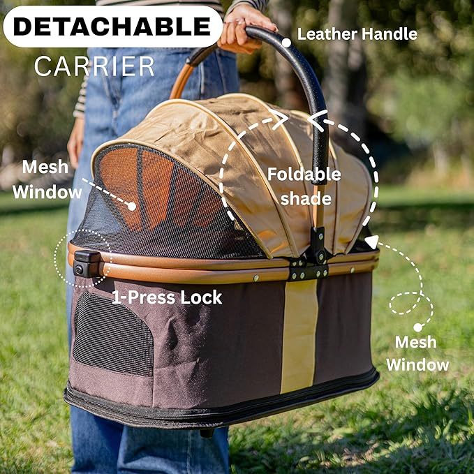Pet Stroller for Small Dogs & Cats, Foldable for Small/Medium Dog Cat to 50 lbs, Removable Carrier, Storage Basket, Cup Holder, 3-in-1 Multifunctional Detachable (Black)