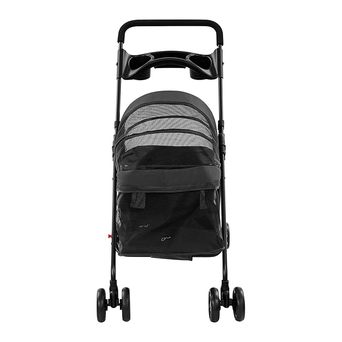 Dog Stroller with Casters, 40LBS Capacity Foldable Cat Pet Stroller with Storage Basket&Cup Holder, Foam Handle, Steel Frame for Small Medium Dogs Cats(Black)