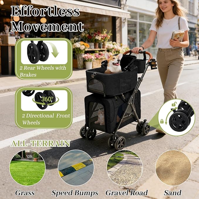 Pet Stroller for Dogs and Cats, 4 in 1 Cat Strollers for 2 Cats, Foldable Dog Stroller for Medium Dogs 20 lbs with Cup Holder and Storage Bag, Suitable for All-Terrain, Dog Gifts