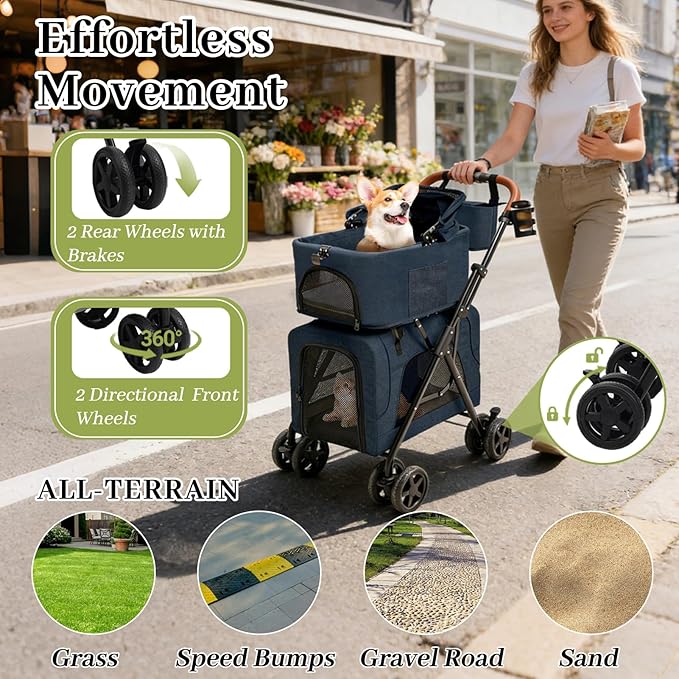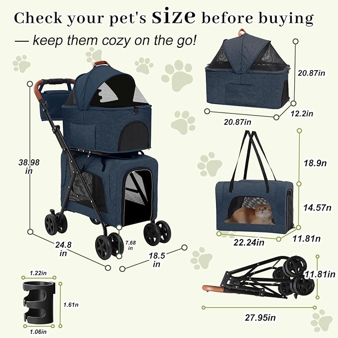 Dog Stroller with Detachable Carriers, Foldable Dog Stroller for Medium Dogs 20 lbs with Cup Holder and Storage Bag, Pet Stroller for Small Dogs, Double Cat Strollers Suitable for All-Terrain