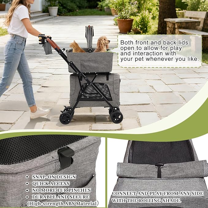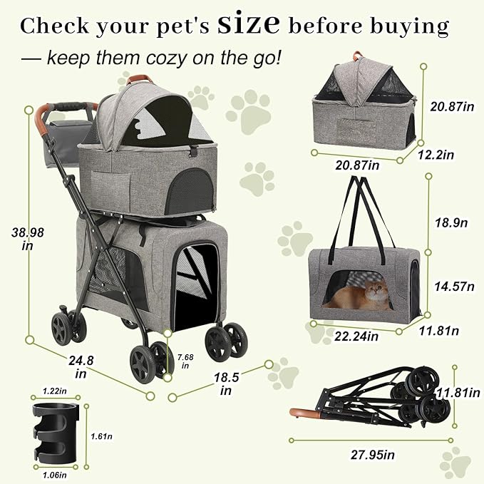 Double Pet Stroller with Detachable Carriers, Dog Stroller for Medium Dogs 20 lb, Foldable Dog Stroller for 2 Dogs,Easy Assembly Cat Stroller for 2 Cats with Cup Holder and Storage Bag for All-Terrain