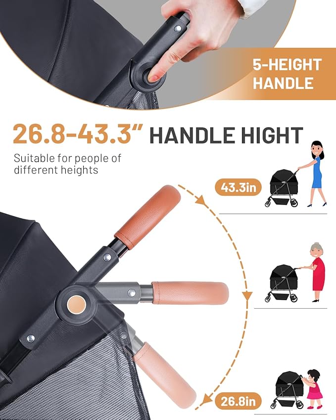 Dog Stroller for Large & Medium Dogs (20–132 lbs), Pet Stroller for 2 Small Dogs with Adjustable Handle & Canopy, Sun Shades, Storage Organizer, Foldable & Ventilated,Black