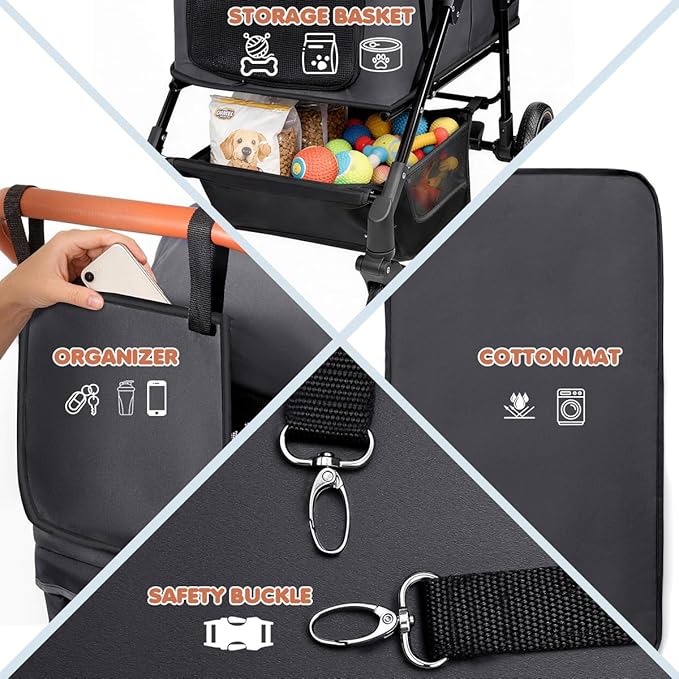 Dog Stroller for Large & Medium Dogs (20–132 lbs), Pet Stroller for 2 Small Dogs, Cat Strollers for 2 Cats, Extra Large Heavy Duty, Foldable & Fully Ventilated Design, Gray