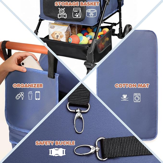 Dog Stroller for Large & Medium Dogs (20–132 lbs), Pet Stroller for 2 Small Dogs, Cat Strollers for 2 Cats, Extra Large Heavy Duty, Foldable & Fully Ventilated Design, Blue