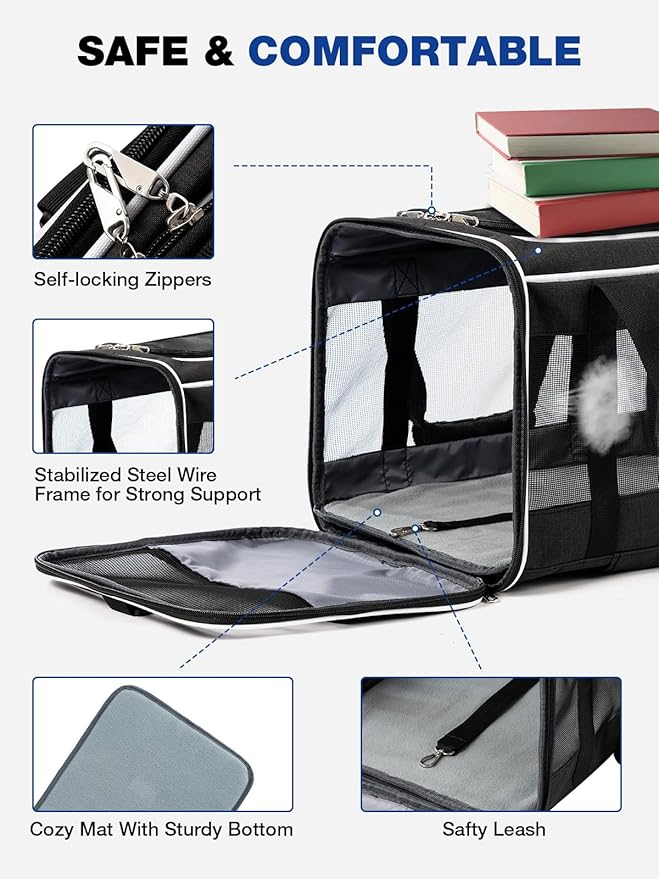 - Premium Materials: Durable 600D Oxford fabric and scratch-resistant mesh to ensure the tsa approved pet carrier long-lasting use. Perfect dog carriers for small dogs to car travel, road trip, or go to the vet.
