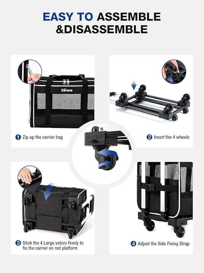 - Designed for Travel: This dog carrier with wheels has a telescopic handle, removable base with wheels. The 360° rotating wheel provides a stable and quiet ride on any surface. The rolling cat carrier also features a carrying handle and adjustable shoulder strap for easy transport.
